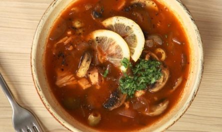 Пищевая ценность одной порции:Калории 543, всего жиров 34 г., насыщенные жиры 6 г., белки 37 г., углеводы 26 г., клетчатка 5 г., холестерин 157 мг., натрий 1106 мг., сахар 0 г. 35 мин.